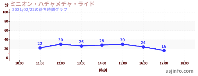 • ミニオン・ハチャメチャ・ライド$B$N(B2021年02月22日の待ち時間