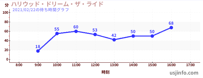 • ハリウッド・ドリーム・ザ・ライド$B$N(B2021年02月22日の待ち時間