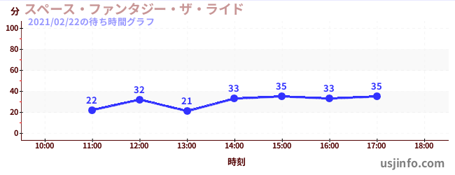 • スペース・ファンタジー・ザ・ライド$B$N(B2021年02月22日の待ち時間