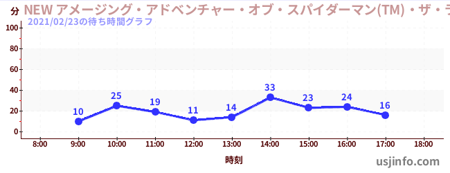 • NEW アメージング・アドベンチャー・オブ・スパイダーマン(TM)・ザ・ライド 4K3D$B$N(B2021年02月23日の待ち時間