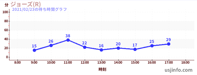 • ジョーズ(R)$B$N(B2021年02月23日の待ち時間