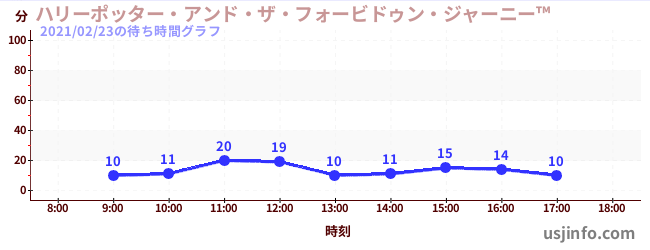 • ハリーポッター・アンド・ザ・フォービドゥン・ジャーニー™$B$N(B2021年02月23日の待ち時間