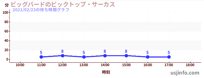 • ビッグバードのビックトップ・サーカス$B$N(B2021年02月23日の待ち時間