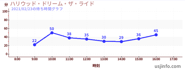 • ハリウッド・ドリーム・ザ・ライド$B$N(B2021年02月23日の待ち時間