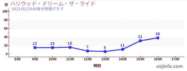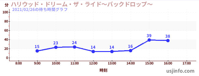 • ハリウッド・ドリーム・ザ・ライド$B$N(B2021年02月26日の待ち時間