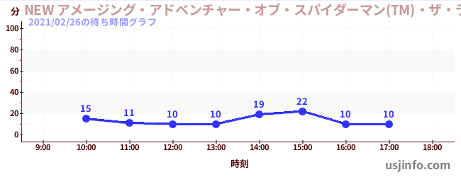 • NEW アメージング・アドベンチャー・オブ・スパイダーマン(TM)・ザ・ライド 4K3D$B$N(B2021年02月26日の待ち時間