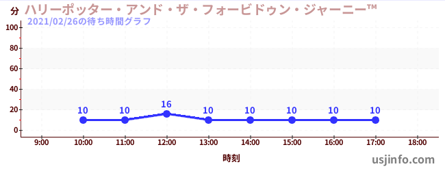 • ハリーポッター・アンド・ザ・フォービドゥン・ジャーニー™$B$N(B2021年02月26日の待ち時間