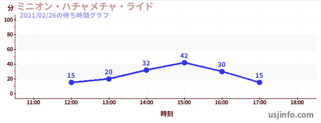 • ミニオン・ハチャメチャ・ライド$B$N(B2021年02月26日の待ち時間