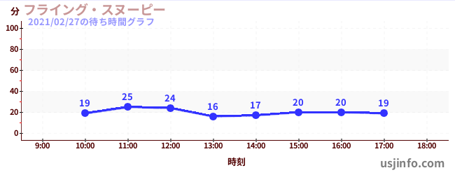 • フライング・スヌーピー$B$N(B2021年02月27日の待ち時間