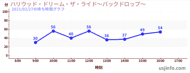 • ハリウッド・ドリーム・ザ・ライド〜バックドロップ〜$B$N(B2021年02月27日の待ち時間