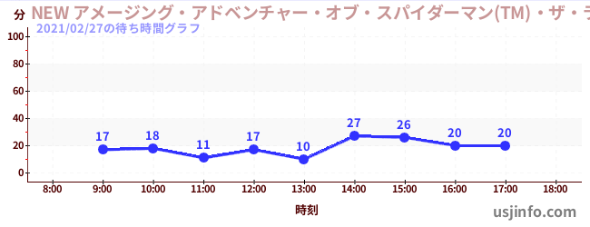 • NEW アメージング・アドベンチャー・オブ・スパイダーマン(TM)・ザ・ライド 4K3D$B$N(B2021年02月27日の待ち時間