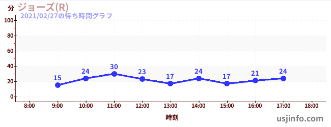 • ジョーズ(R)$B$N(B2021年02月27日の待ち時間