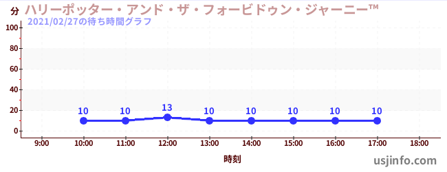 • ハリーポッター・アンド・ザ・フォービドゥン・ジャーニー™$B$N(B2021年02月27日の待ち時間