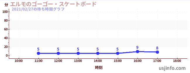 • エルモのゴーゴー・スケートボード$B$N(B2021年02月27日の待ち時間