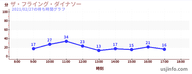 • ザ・フライング・ダイナソー$B$N(B2021年02月27日の待ち時間