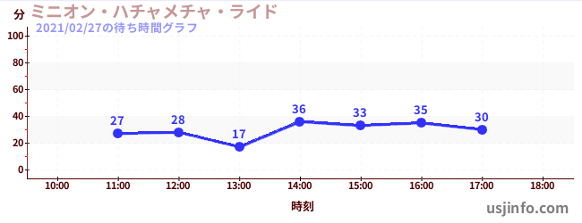 • ミニオン・ハチャメチャ・ライド$B$N(B2021年02月27日の待ち時間