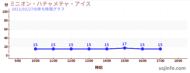 • ミニオン・ハチャメチャ・アイス$B$N(B2021年02月27日の待ち時間