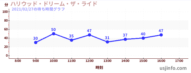 • ハリウッド・ドリーム・ザ・ライド$B$N(B2021年02月27日の待ち時間
