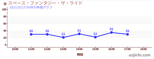 • スペース・ファンタジー・ザ・ライド$B$N(B2021年02月27日の待ち時間