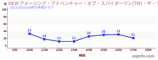 • NEW アメージング・アドベンチャー・オブ・スパイダーマン(TM)・ザ・ライド 4K3D$B$N(B2021年03月01日の待ち時間