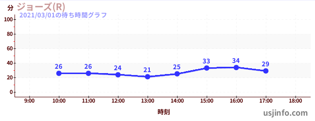 • ジョーズ(R)$B$N(B2021年03月01日の待ち時間