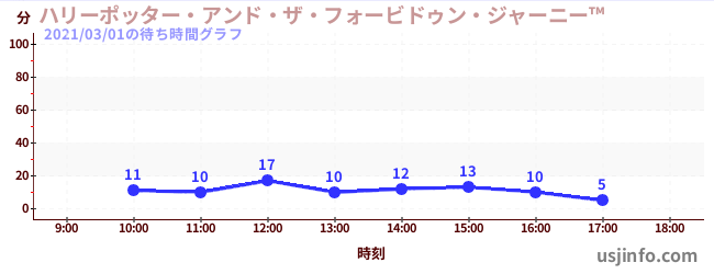 • ハリーポッター・アンド・ザ・フォービドゥン・ジャーニー™$B$N(B2021年03月01日の待ち時間