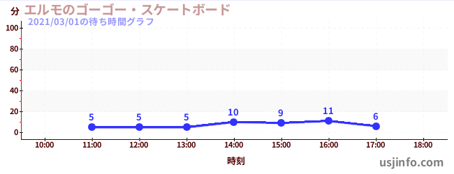 • エルモのゴーゴー・スケートボード$B$N(B2021年03月01日の待ち時間