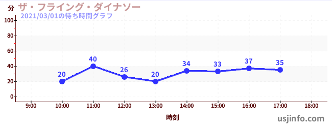 • ザ・フライング・ダイナソー$B$N(B2021年03月01日の待ち時間