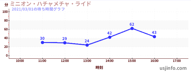 • ミニオン・ハチャメチャ・ライド$B$N(B2021年03月01日の待ち時間