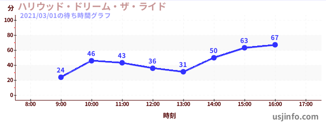 • ハリウッド・ドリーム・ザ・ライド$B$N(B2021年03月01日の待ち時間