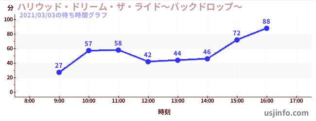 • ハリウッド・ドリーム・ザ・ライド〜バックドロップ〜$B$N(B2021年03月03日の待ち時間