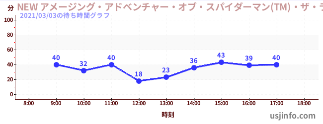• NEW アメージング・アドベンチャー・オブ・スパイダーマン(TM)・ザ・ライド 4K3D$B$N(B2021年03月03日の待ち時間