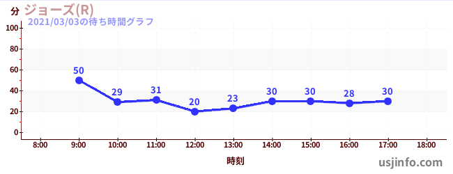 • ジョーズ(R)$B$N(B2021年03月03日の待ち時間