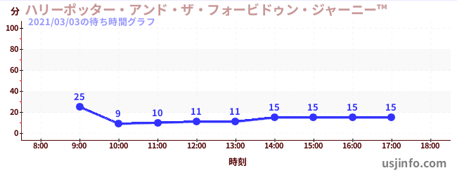 • ハリーポッター・アンド・ザ・フォービドゥン・ジャーニー™$B$N(B2021年03月03日の待ち時間