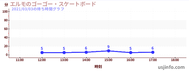 • エルモのゴーゴー・スケートボード$B$N(B2021年03月03日の待ち時間