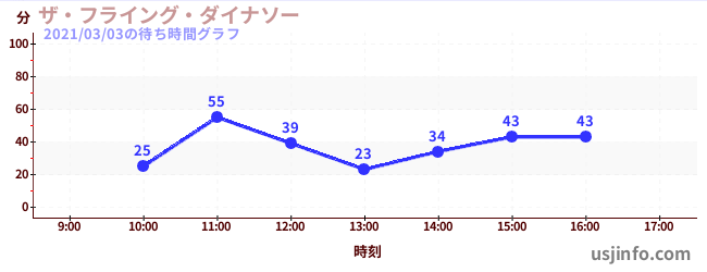 • ザ・フライング・ダイナソー$B$N(B2021年03月03日の待ち時間