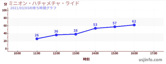 • ミニオン・ハチャメチャ・ライド$B$N(B2021年03月03日の待ち時間