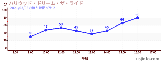 • ハリウッド・ドリーム・ザ・ライド$B$N(B2021年03月03日の待ち時間