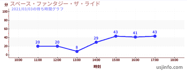 • スペース・ファンタジー・ザ・ライド$B$N(B2021年03月03日の待ち時間
