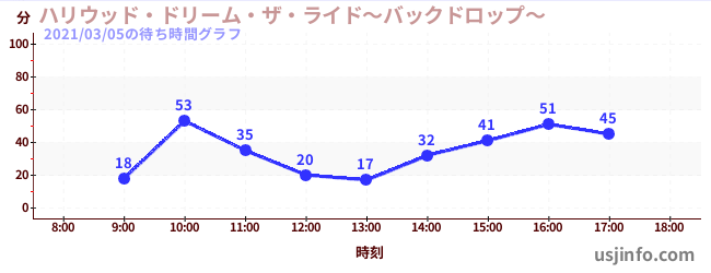 • ハリウッド・ドリーム・ザ・ライド〜バックドロップ〜$B$N(B2021年03月05日の待ち時間