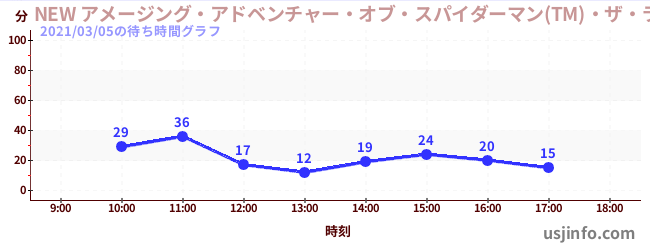 • NEW アメージング・アドベンチャー・オブ・スパイダーマン(TM)・ザ・ライド 4K3D$B$N(B2021年03月05日の待ち時間