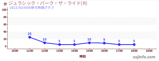 • ジュラシック・パーク・ザ・ライド(R)$B$N(B2021年03月05日の待ち時間