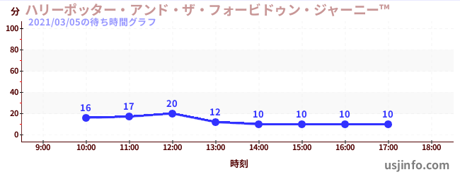 • ハリーポッター・アンド・ザ・フォービドゥン・ジャーニー™$B$N(B2021年03月05日の待ち時間
