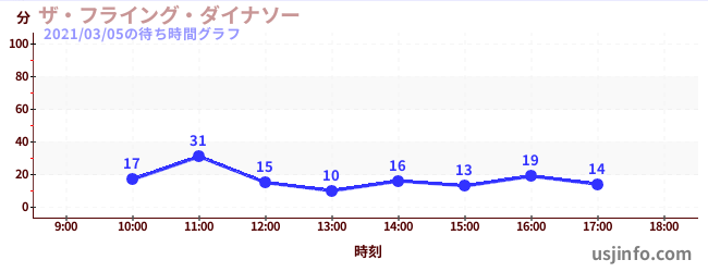 • ザ・フライング・ダイナソー$B$N(B2021年03月05日の待ち時間