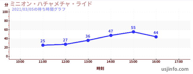 • ミニオン・ハチャメチャ・ライド$B$N(B2021年03月05日の待ち時間