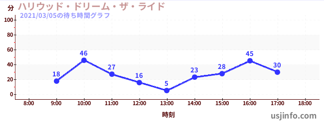 • ハリウッド・ドリーム・ザ・ライド$B$N(B2021年03月05日の待ち時間