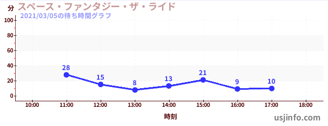 • スペース・ファンタジー・ザ・ライド$B$N(B2021年03月05日の待ち時間