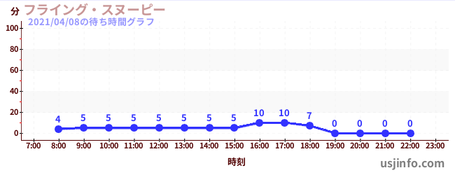 • フライング・スヌーピー$B$N(B2021年04月08日の待ち時間