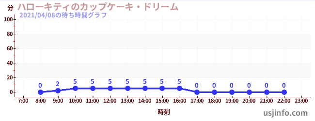 • ハローキティのカップケーキ・ドリーム$B$N(B2021年04月08日の待ち時間