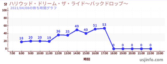 • ハリウッド・ドリーム・ザ・ライド〜バックドロップ〜$B$N(B2021年04月08日の待ち時間